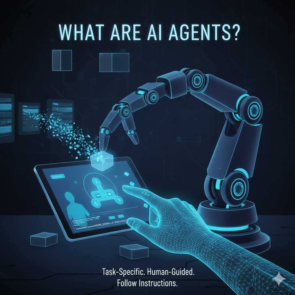 • AI Agents represent the foundational stage, performing predefined tasks within fixed rules and limited adaptability.