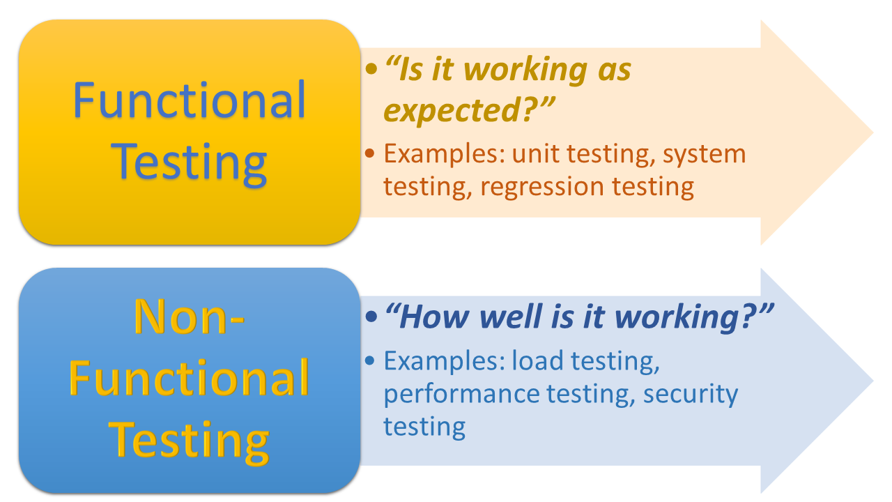 From the above diagram, you can see that while functional testing is more interested in the application’s behavior, non-functional testing is concerned with the execution aspect of the application. What I mean by this is that through non-functional testing, you can gauge various aspects of the application that are otherwise not tangible, like its performance and security.