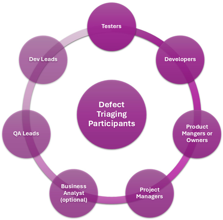 A team sits to triage defects because you need different perspectives to decide if a defect is worth pursuing or not. Participants usually include: