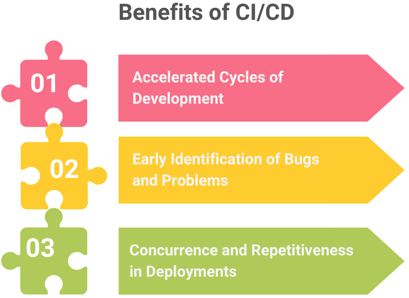 • Accelerated Cycles of Development: CI/CD allows teams to release software in a more frequent way, and it automates the process of integration and deployment. This helps in a quicker development cycle where the new functionalities, bug fixes, or improvements are made available to end users in a shorter duration.
