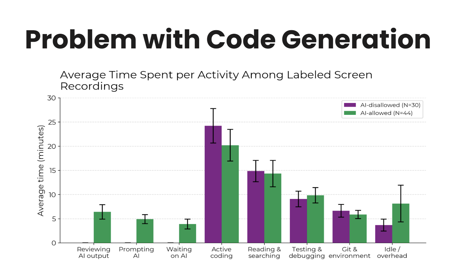 The promise of AI-generated code boosting productivity by 10x sounds exciting, but reality tells a different story. People expect improvement of performance, but actually, it slows them down by 19% as measured by Model Evaluation and Threat Research (METR). Engineering leaders at the roundtable discussed that the real productivity is around 10–20%, and sometimes it even dips into negative numbers during adoption.