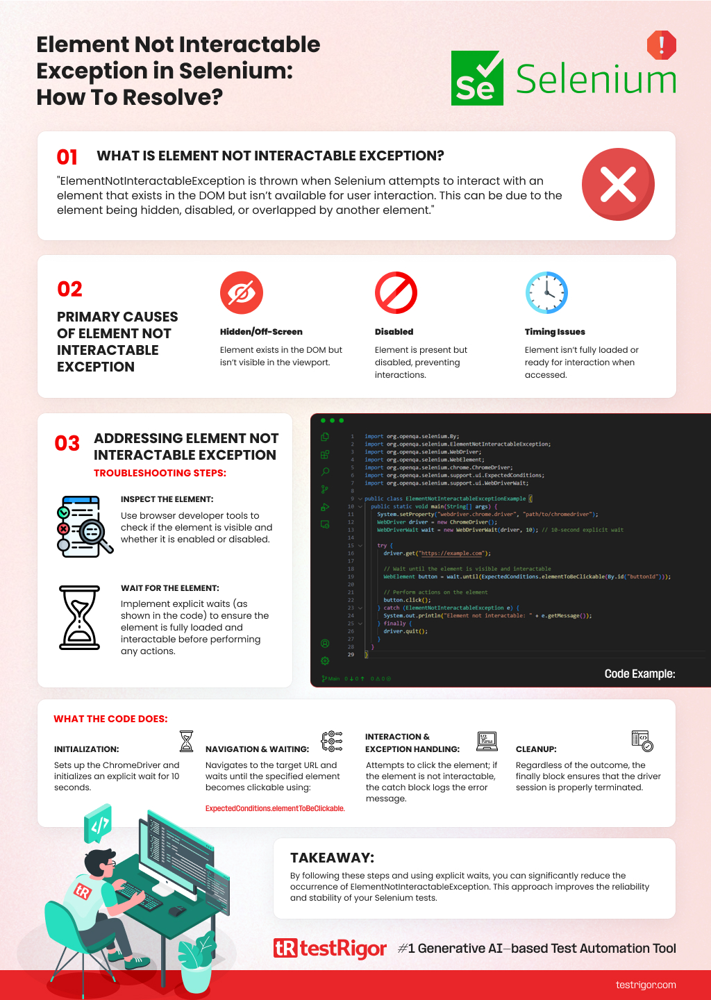 By following the recommended practices and using the provided code example as a guide, you can significantly reduce the occurrence of Element Not Interactable Exception and improve the stability of their automated tests.