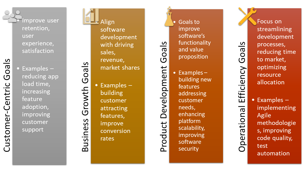 - Collaborative goal setting: Involve both business and engineering teams in setting goals. This ensures goals are realistic, measurable, and aligned with both technical capabilities and business objectives.