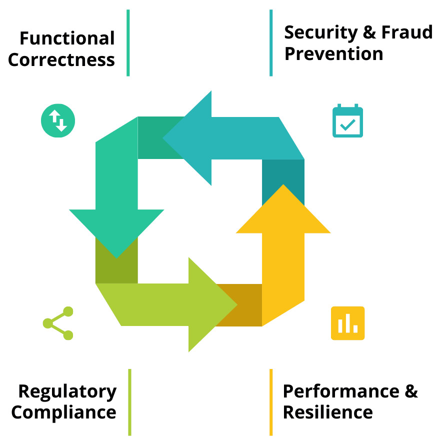 This raises the bar for testing far beyond what most e-commerce or SaaS apps require. Testing must be fail-proof.
