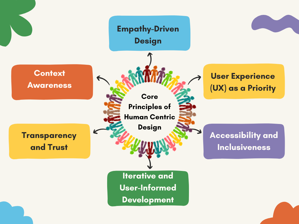 For software to be truly centered around humans, developers follow a variety of interrelated core principles. These principles are explained as follows: