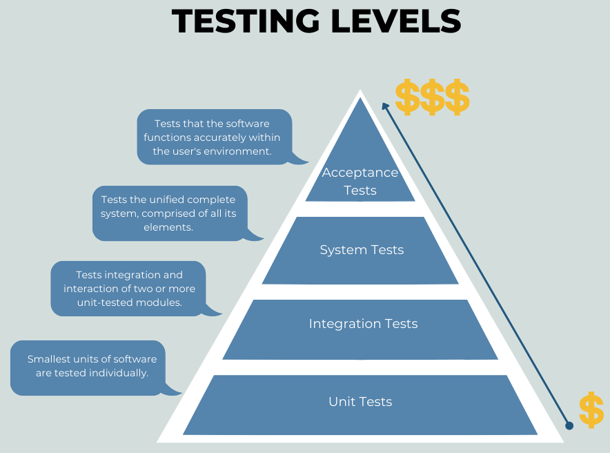 • Unit Tests: The smallest software unit (method, few lines of code) is tested individually.