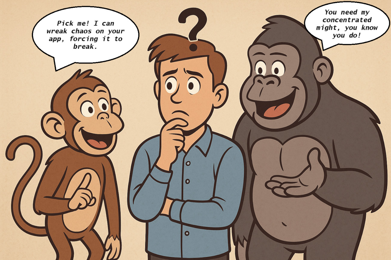 Once the monkey has found the initial chaos, and your software is generally stable, that’s when the gorilla steps in to really harden specific areas.