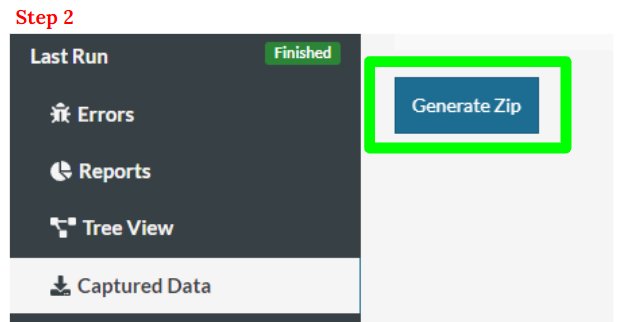 - This feature introduces a new section called “Captured Data”, which allows users to download in zip format all the files which were captured in test cases of test runs. It also shows a table of the grabbed data values.