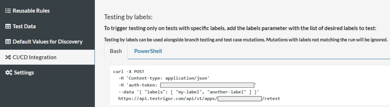 - This can be done through our retest API (see example in the “CI/CD Integration” Section inside the app).