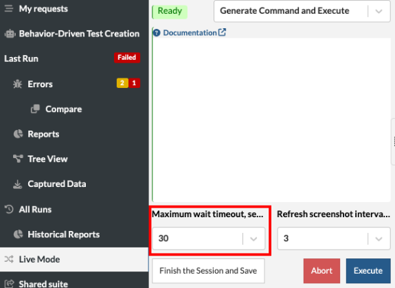 We released the ability to adjust the maximum wait timeout (the total time that testRigor will spend searching for an element before the step that it is trying to execute fails) in the Live Mode section.