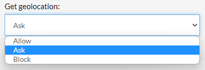 We added a new dropdown where the user can choose whether the browser will have permission to get geolocation without asking for it. To find this dropdown, go to Settings->Advanced and scroll down to the Desktop Web Fine Tuning section.