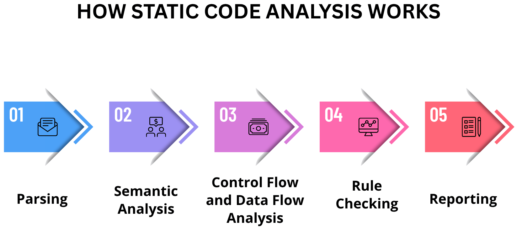 - Control Flow and Data Flow Analysis: Control flow analysis is used to track possible execution paths, while data flow analysis is used to track the behavior of data as it travels through variables. It is crucial for detecting vulnerabilities such as undefined variable use or improper data sanitization.