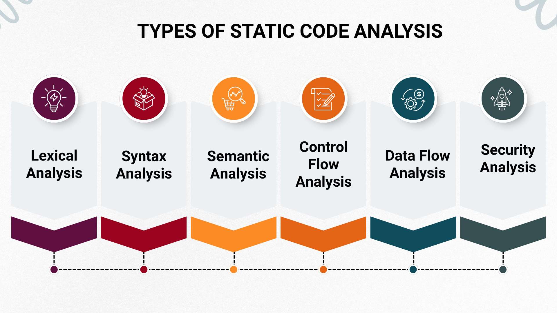 - Security Analysis: A specialized check of common security bugs such as SQL injection, buffer overflows, hardcoded passwords, or cross-site scripting. Each of these kinds of analysis must be formed to ensure that the software will be more reliable, easier to maintain, and free of severe security gaps.