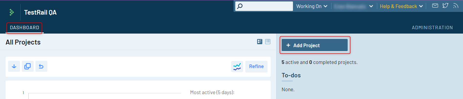 Step 1: Go into your project. You can do this by clicking on the project of choice on the Dashboard and then on Test Suites and Cases within the project.
