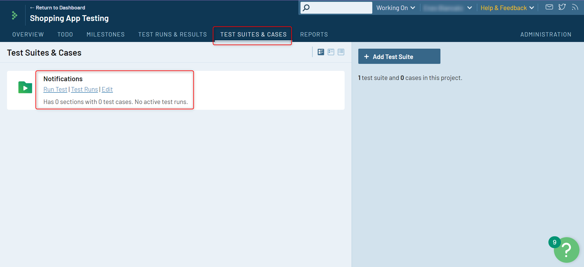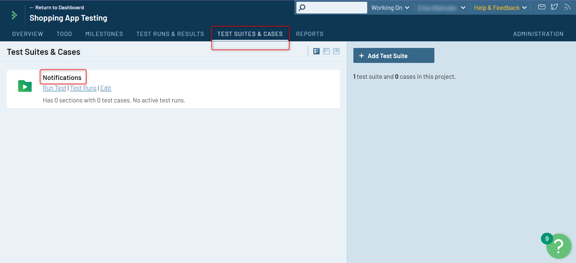 Under the Test Suites & Cases section within the project, you’ll see this newly created test suite.
