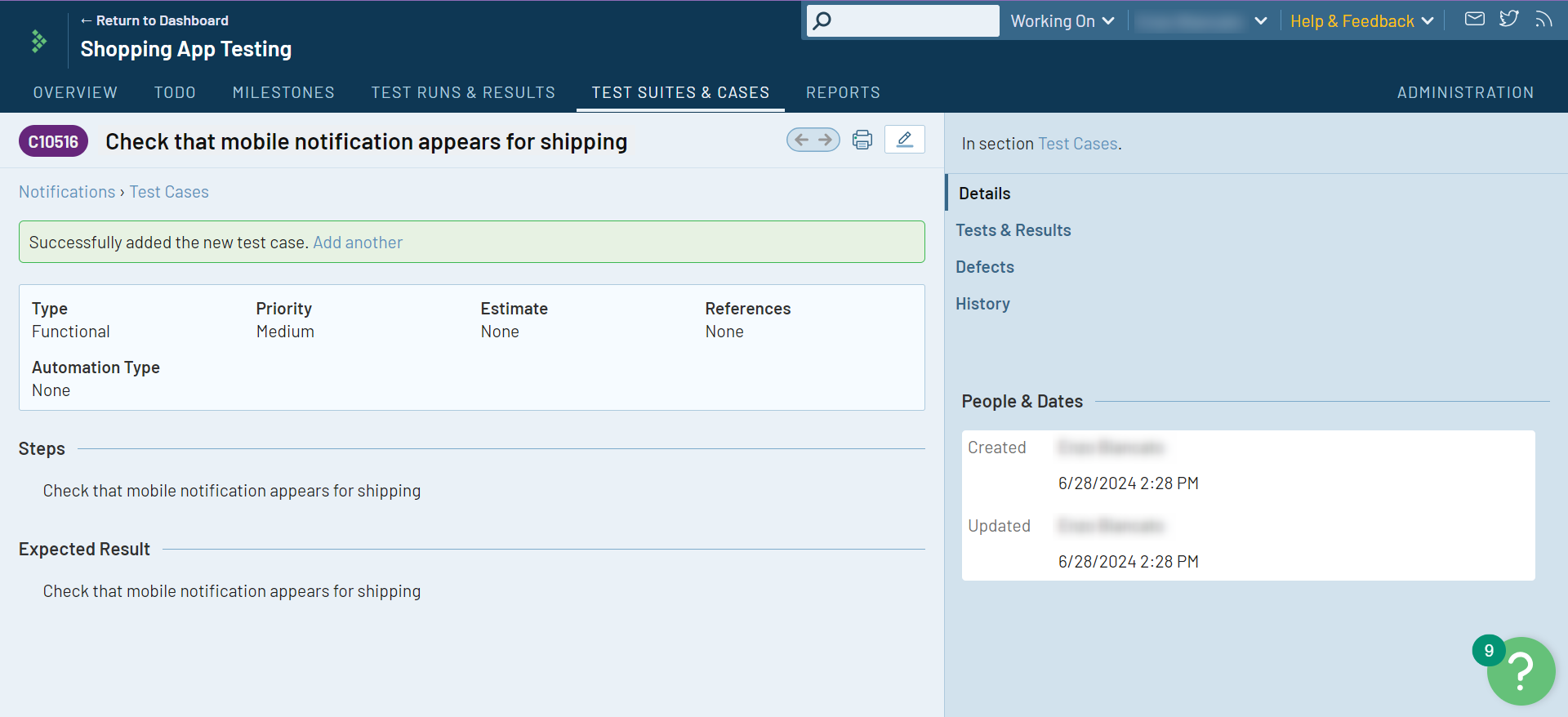 Step 5: Save your test case. You can even save the existing test case and directly have TestRail open a new form for you to create another test case.
