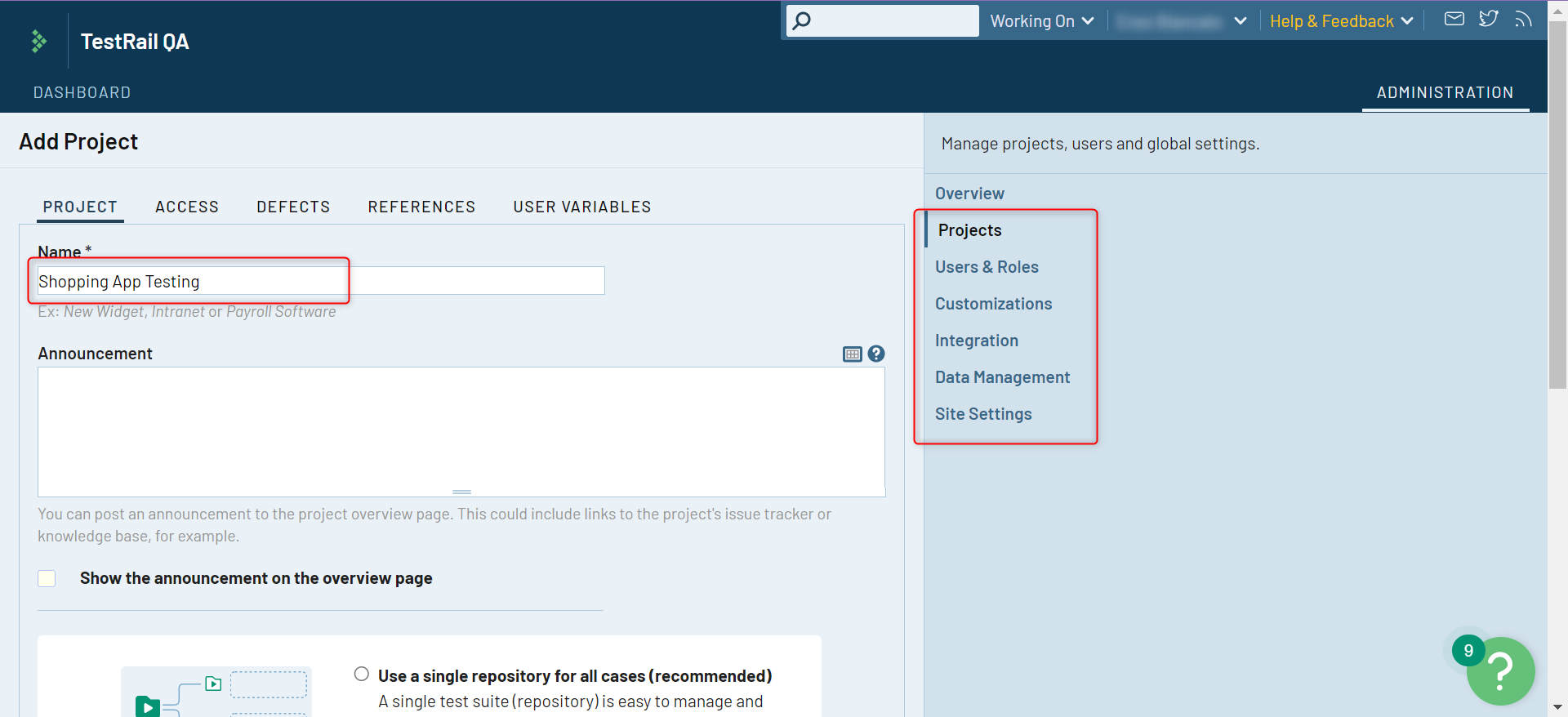 Scrolling down, you can choose how you’d like TestRail to organize your test cases. Choose an option and then click on Add Project.