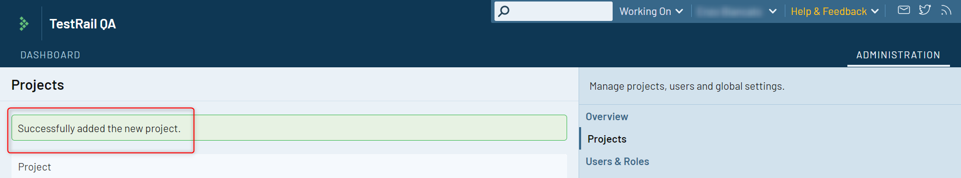 As soon as you do that, you’ll get a message saying that your project was created successfully, and this new project will be visible to you in the list of projects.