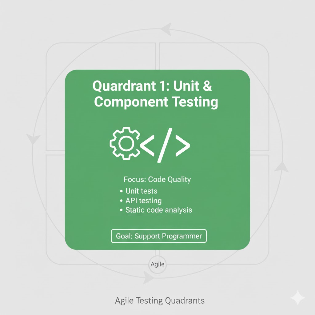 Q1 Technology-Facing Tests that Support Development Ensure code correctness, stability, and early defect detection Low-level, fast, automated testing at the component or unit level Developers, Build Systems, Test Engineers Unit Testing, Component Testing, API Testing, Static Code Analysis, Test-Driven Development (TDD)