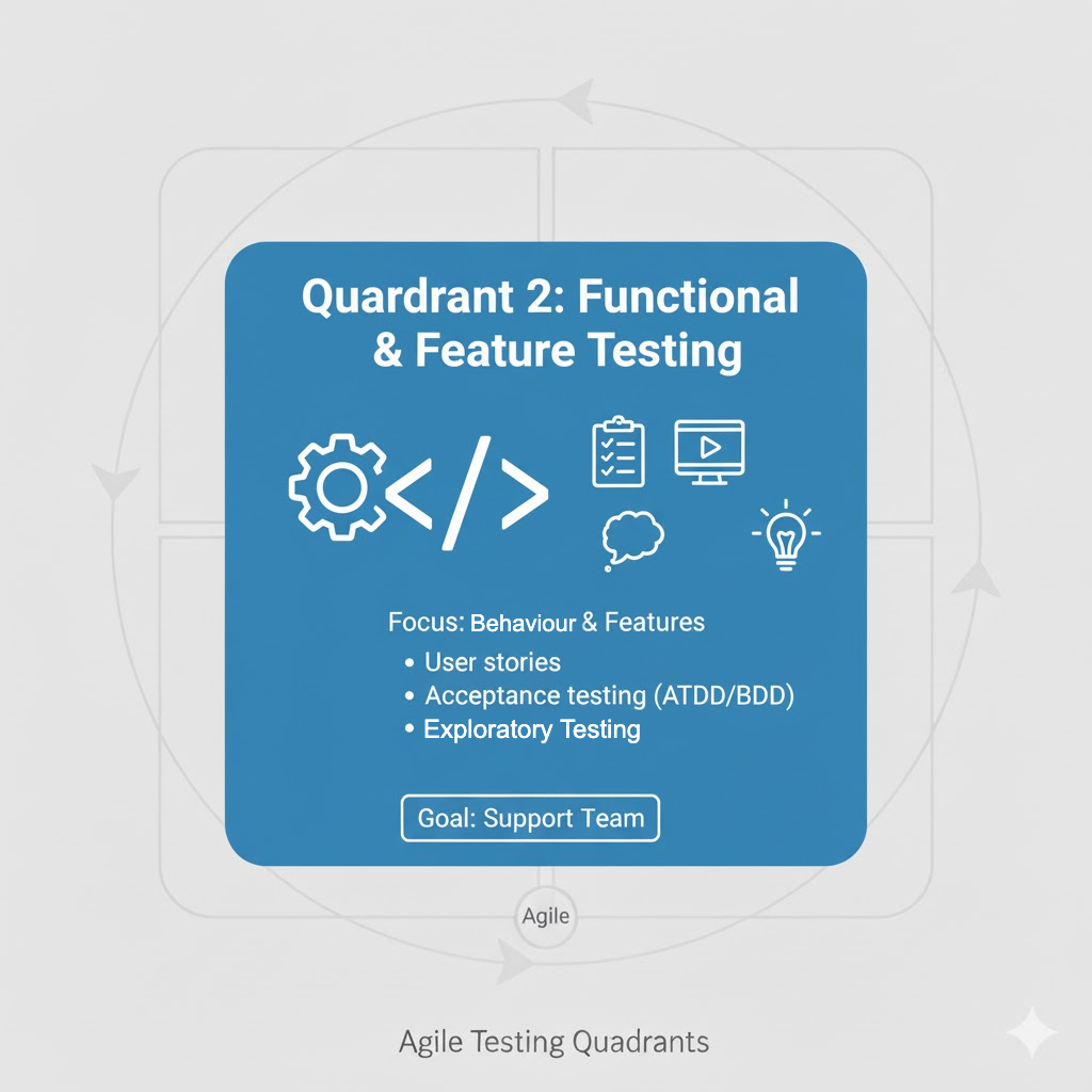• Quadrants Q3 and Q4 ensure the product meets real-world needs and remains resilient through business-facing and non-functional testing.