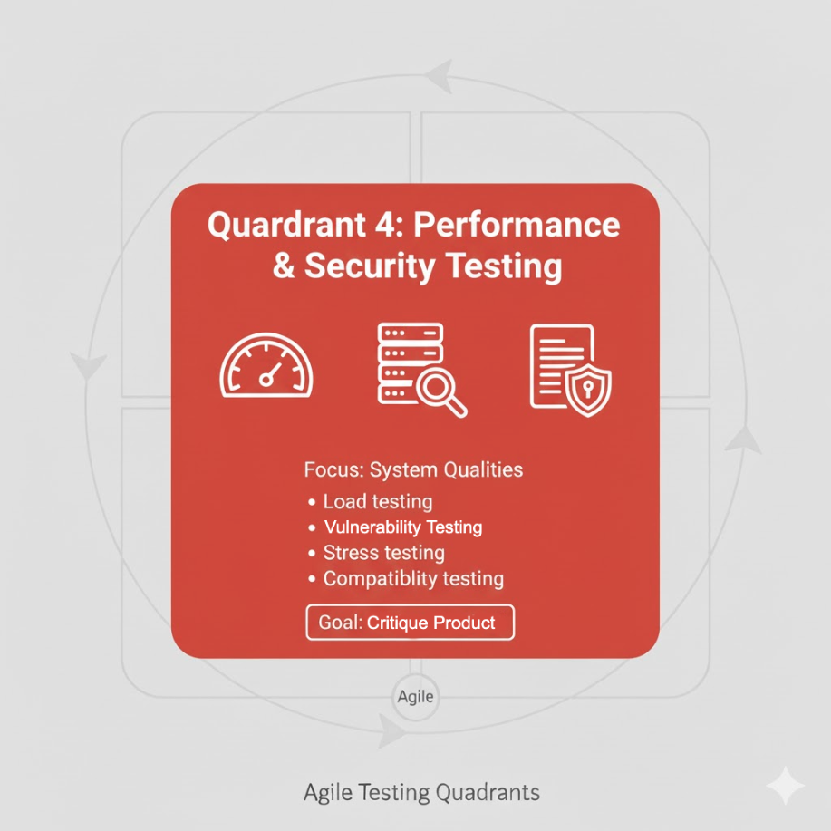 • Primary Goal: The primary purpose of Quadrant 4 is to evaluate the system’s non-functional characteristics, including performance, security, scalability, and resilience.