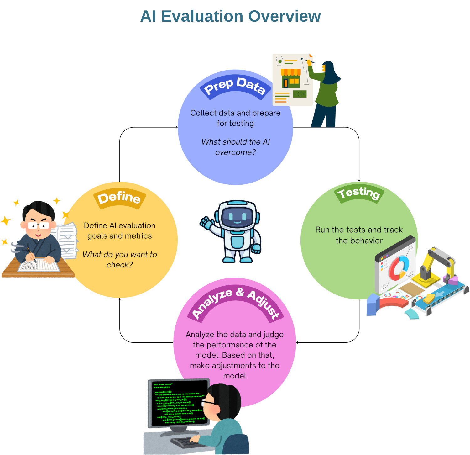• AI evaluation, or AI eval, is a way to monitor AI systems. They use special metrics for this. This is because AI models are probabilistic, data-driven, evolve and change their behavior.