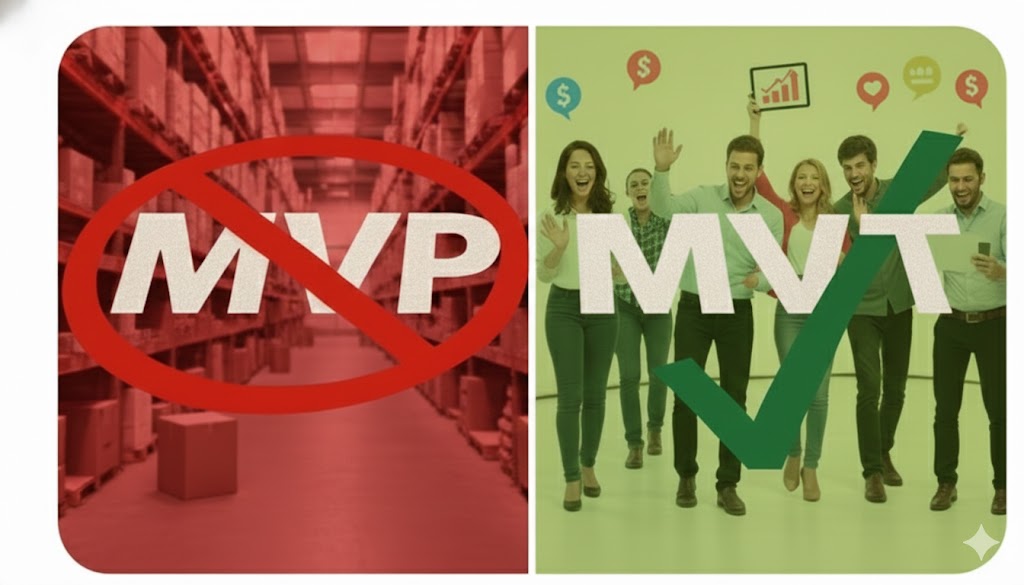 To get some clarity on MVT, it would be interesting to take a step back and look at the MVP (Minimum Viable Product). As outlined by Eric Ries in his book, The Lean Startup, MVP is a strategy designed to ensure that your assumptions about customer value are correct without requiring too much investment. Instead of creating an entire product, teams release the smallest version that works and can prove or disprove a hypothesis.