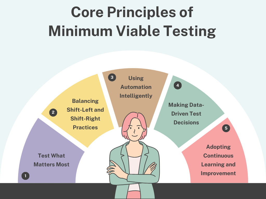 The fundamental principles of Minimum Viable Testing help to focus teams on leaner, smarter, and more effective testing. These principles emphasise the importance of value, waste reduction, and using data and automation to facilitate speedy, assured releases. Together, they create viable ingredients for a testing strategy designed for a modern, iterative workflow.
