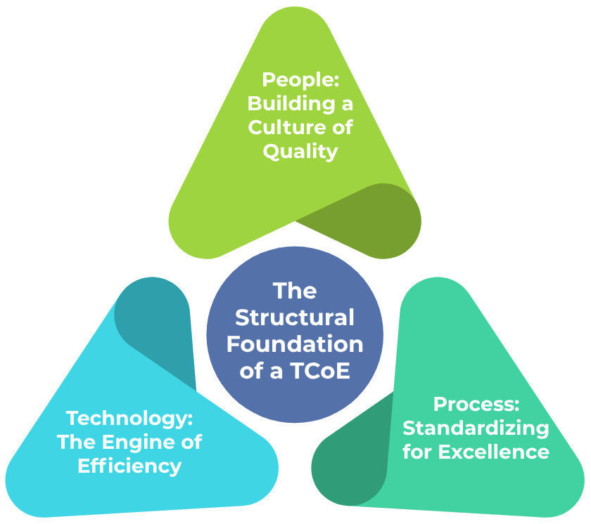 • A TCoE integrates people, process, and technology to build a data-driven, intelligent, and continuously improving QA ecosystem.