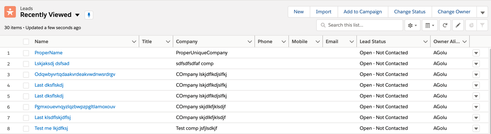 validate that table at row containing "ProperUniqueCompany" and column "Lead Status" contains "Open - Not Contacted"
