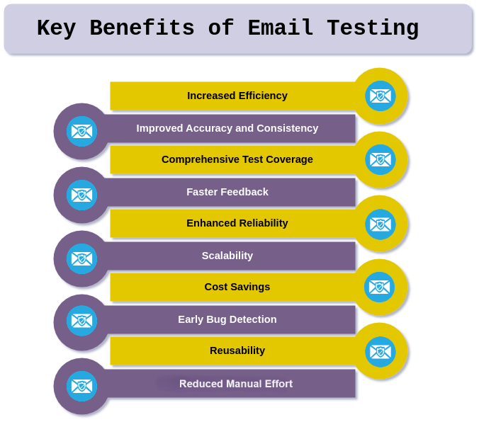 Automating email testing offers a wide variety of benefits when compared to manual testing. This not only increases the speed of testing but also increases the reliability.