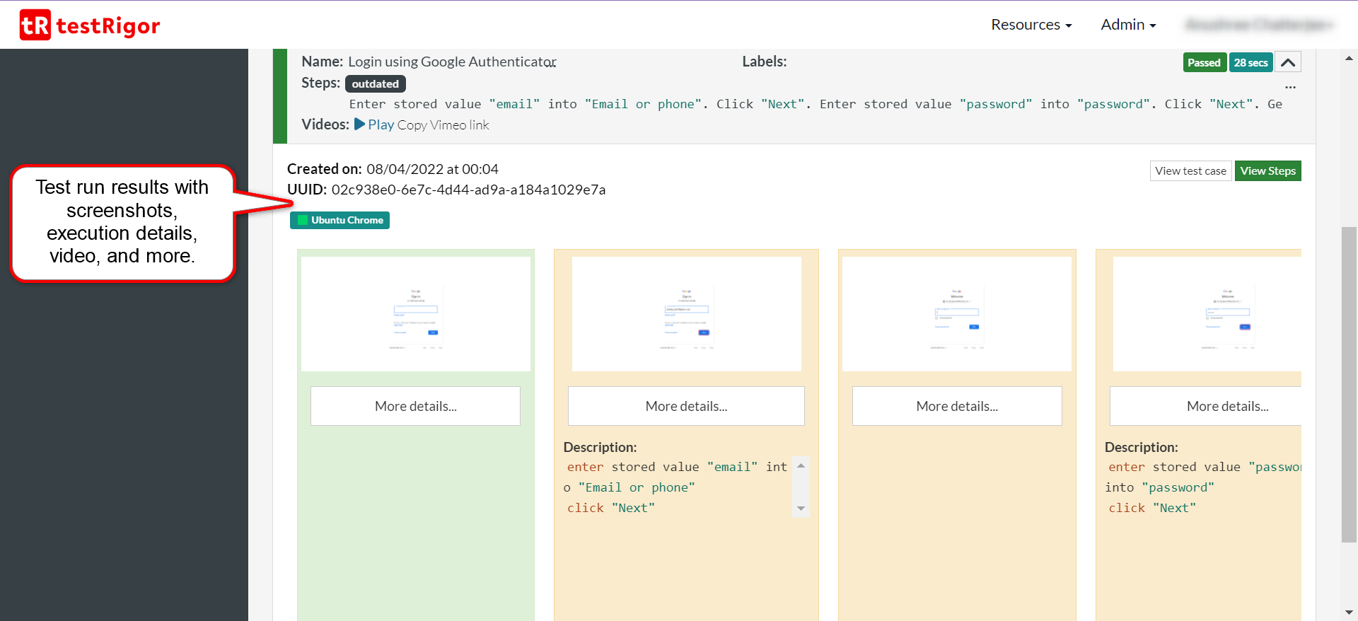 - 2FA, QR Code, and Captcha Resolution: testRigor efficiently manages the 2FA, QR Code, and Captcha resolution through its simple English commands.