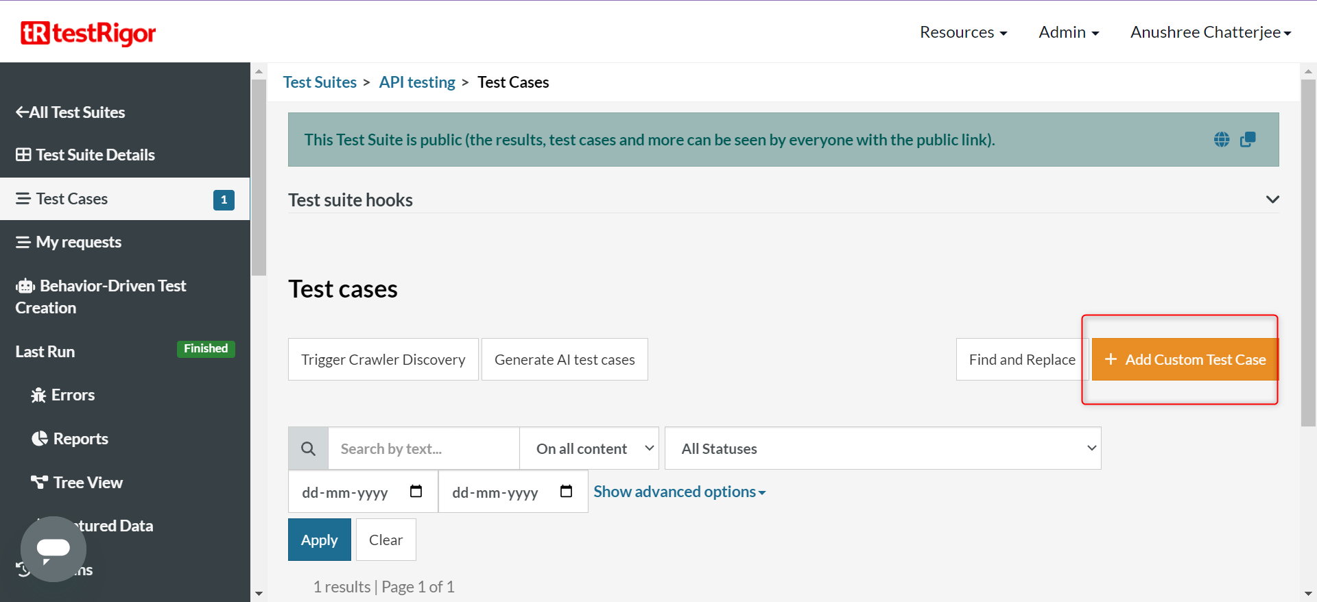Step 4: To create a new custom test case yourself, click Add Custom Test Case.