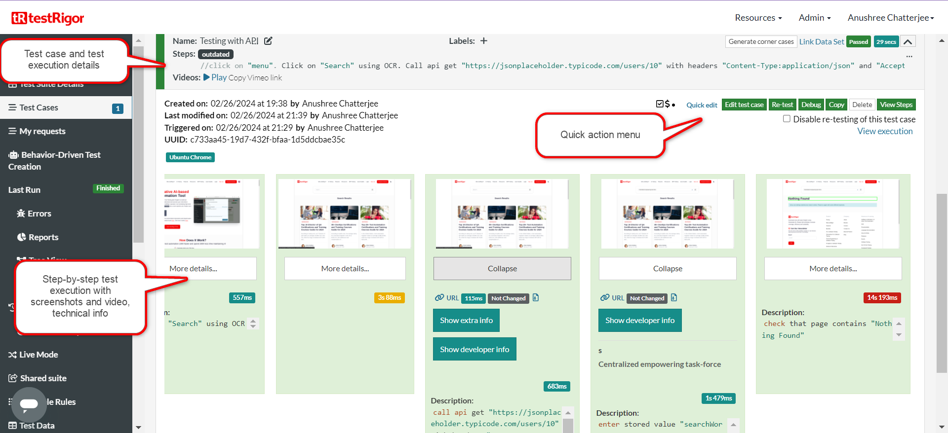 You can also download the complete execution with steps and screenshots in PDF or Word format through the View Execution option.