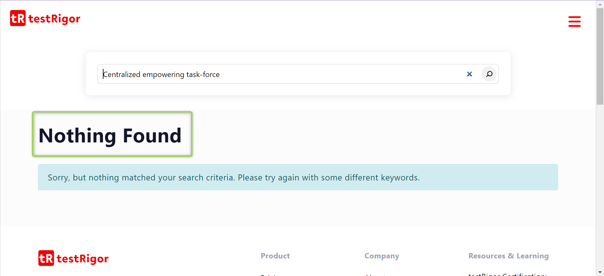 Step 6: The page should display ‘Nothing Found’ once the search is complete. Add the assertion using plain English as below: