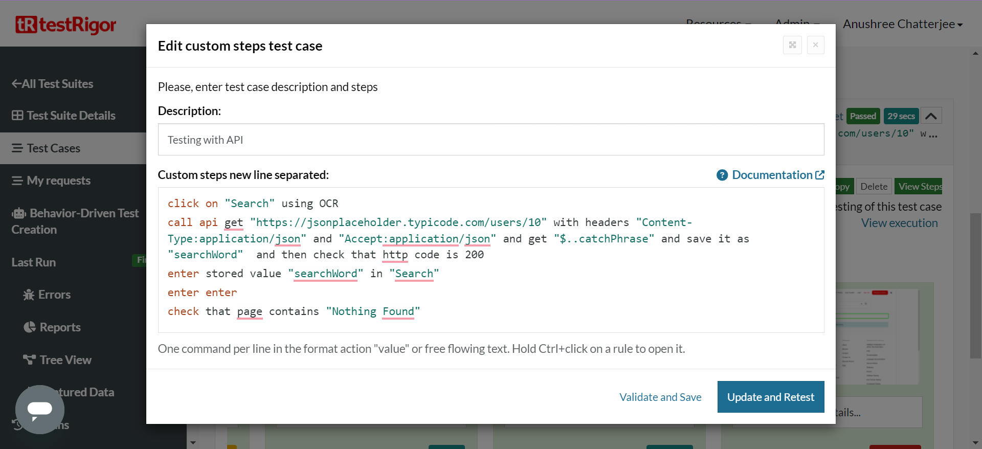 During testing, you might find yourself in a situation where you might need to work directly with APIs. testRigor allows you to work directly with APIs, especially during end-to-end or functional testing.