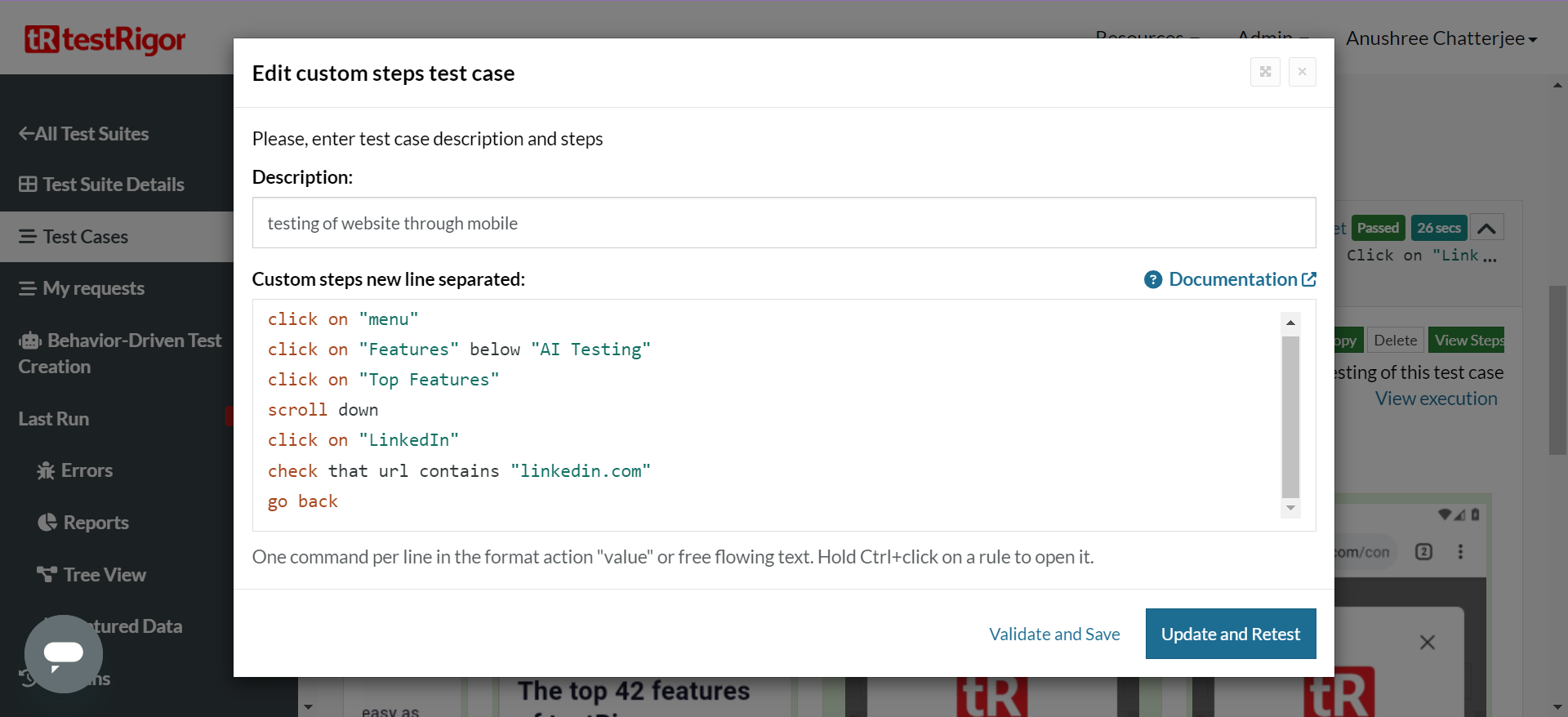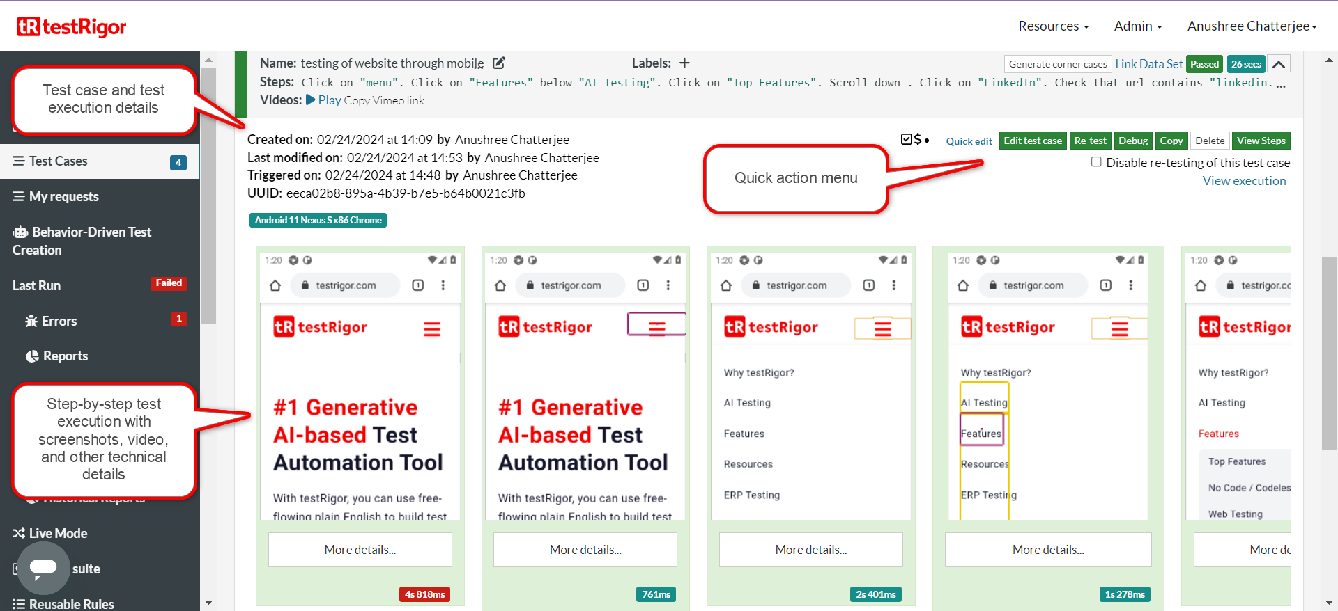 We will test the testRigor website’s mobile version. Here’s the flow of the test case.