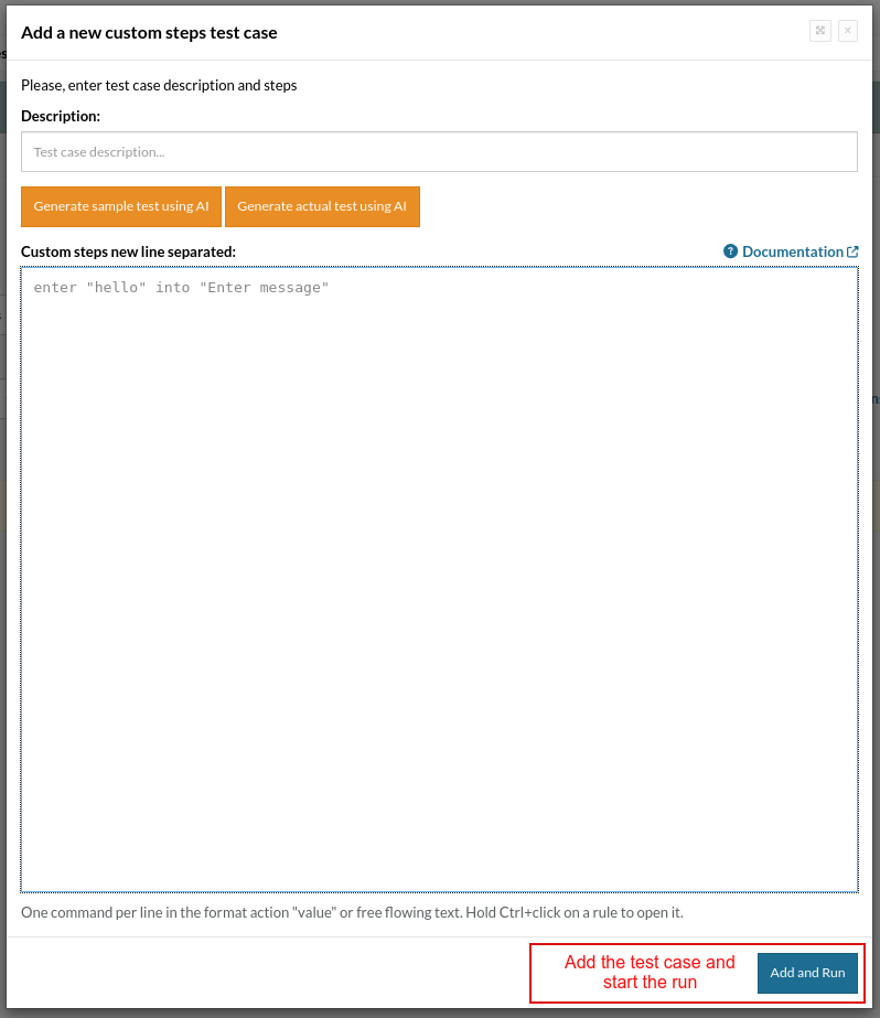 • Number of test cases to generate using AI: You can simplify your test creation further by opting to generate test cases based on the App Description text. This feature works on generative AI.
