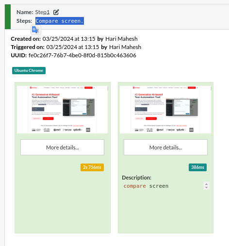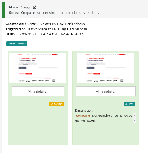 Step 2: To compare with the previous version of test execution, we can add a testRigor test step as: