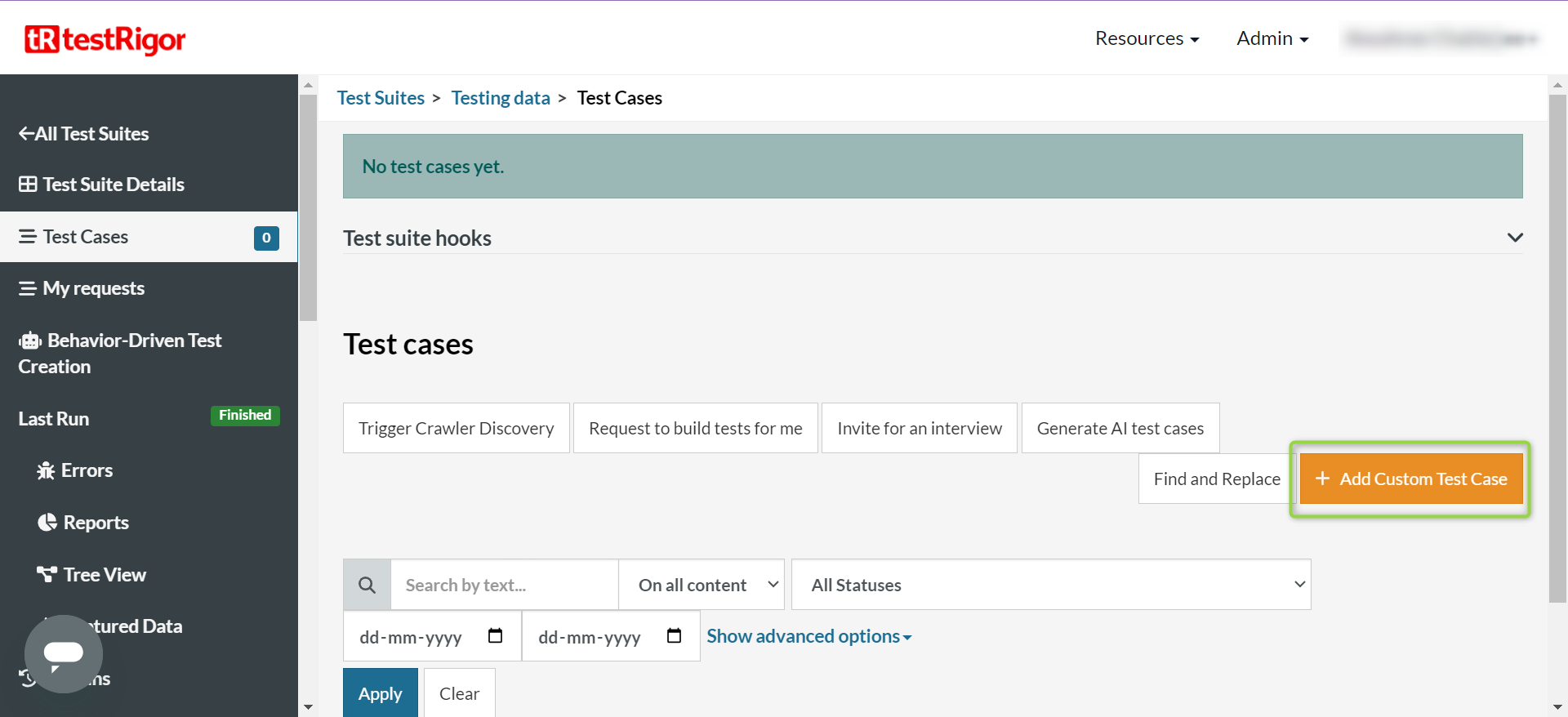 Step 4: To create a new custom test case yourself, click Add Custom Test Case.