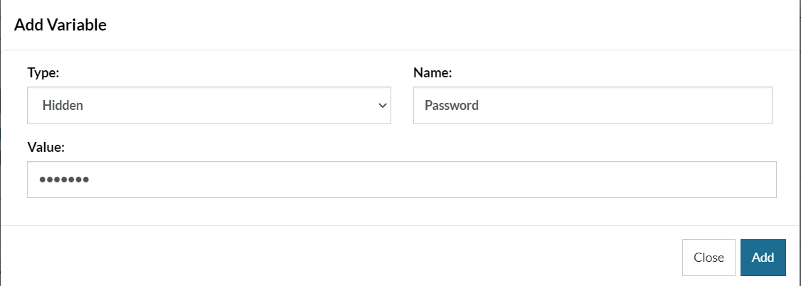Hiddenfrom theTypedropdown. - Assign a variable name, which will be used to summon your hidden value in your test case.