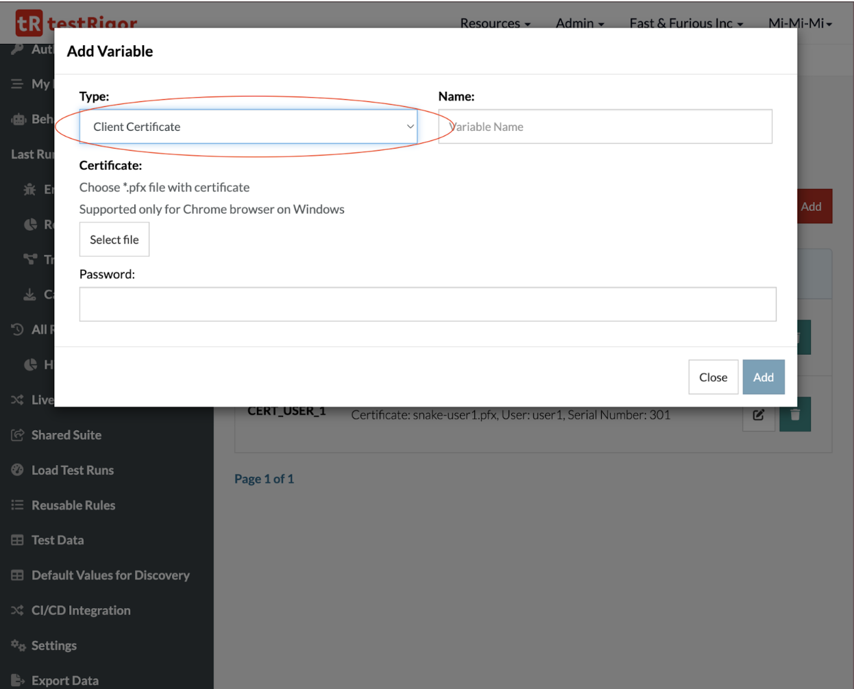 - To launch a browser with a specific certificate within a single test case, use a command like start browser “context-admin” with certificate from stored variable “CERT_USER_ADMIN” and switch, where CERT_USER_ADMIN is the name from Test Data. Read more about it here.