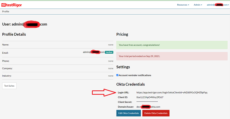 - Automatically creates user accounts in testRigor when Single-Sign-On is initiated by your Okta users.