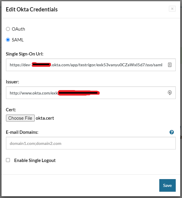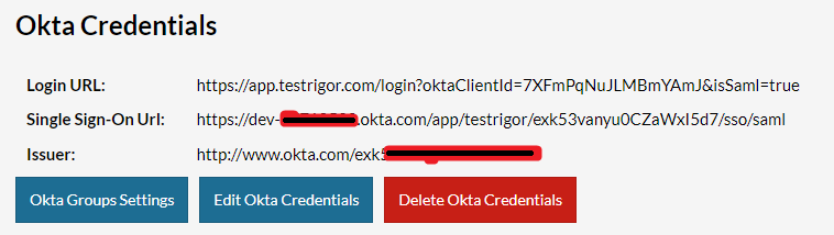 - If the values provided in step 2.3, above, are correct, you will see a success message telling you that the Okta credentials was saved successfully.