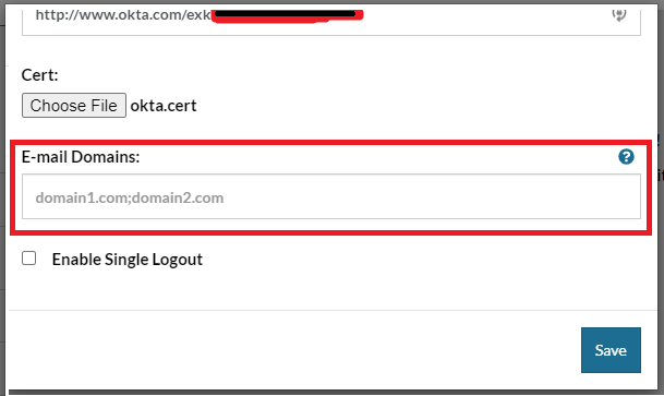 In the E-mail Domains field enter the domains of your company separated by “;” like “yourcompany.com;yourcompany2.com”.