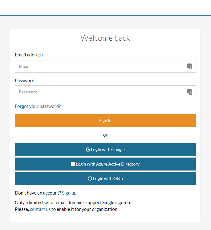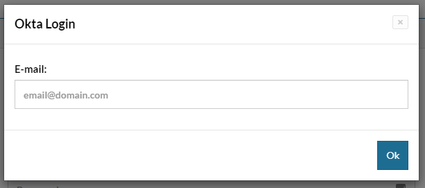 In the dialog that appears, enter an email with one of the domains configured in step 3 and you will be redirected to login through Okta.