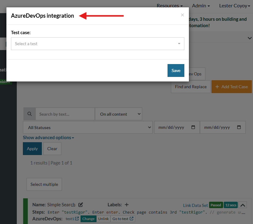 Test cases now allow clients to manage test case management system links directly from the Edit Test Case page. This feature improves accessibility and integration management, enabling quick navigation and updates for connected test management tools. You can see an example with Azure DevOps link: