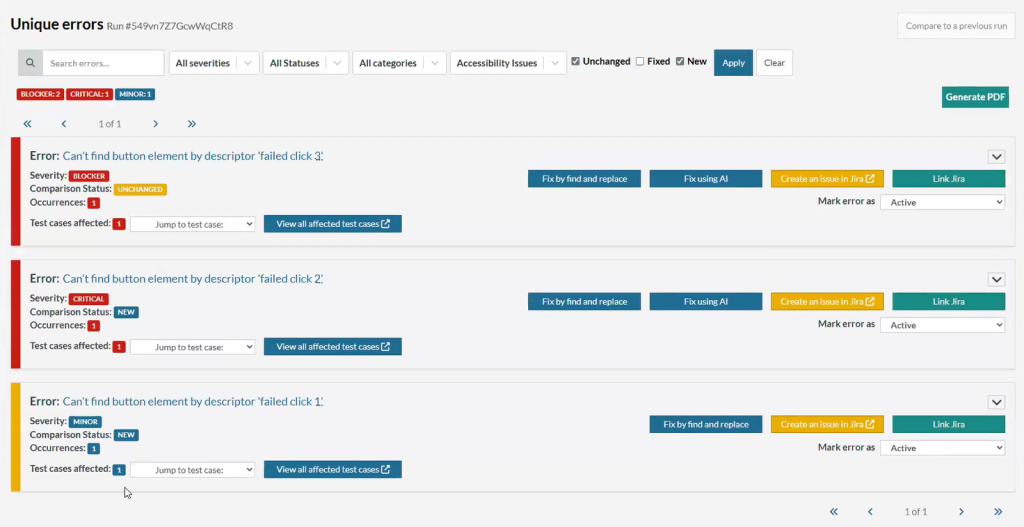 Caption: Blocker, Critical and Minor depending on the type of error selected.