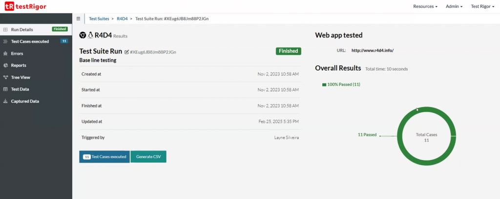 Visual “Overall Results” Report for Test Runs in testRigor
