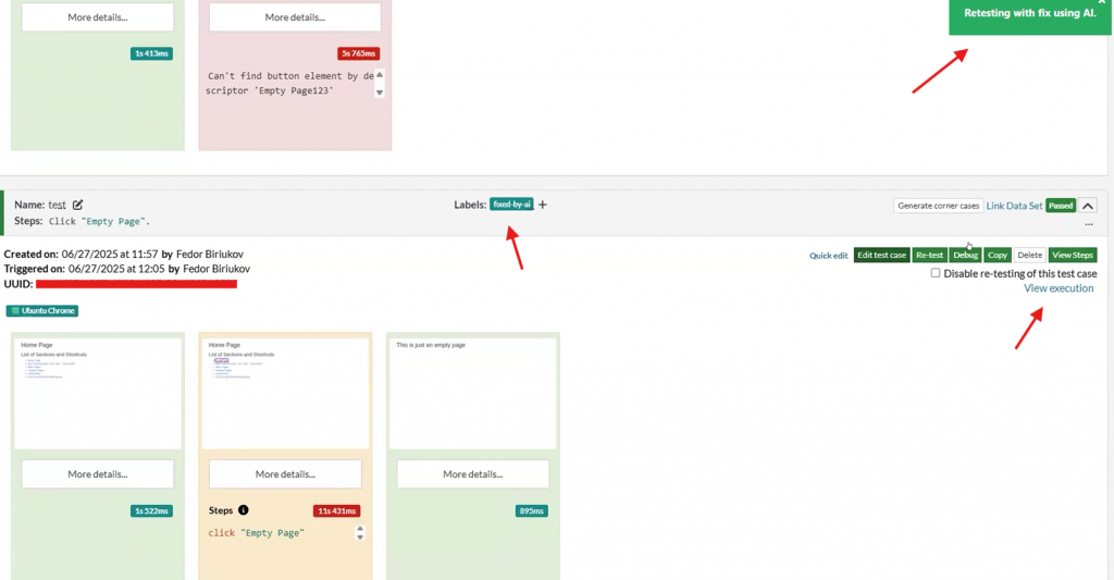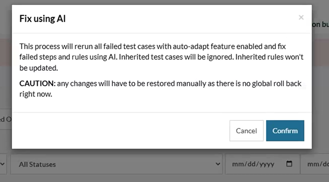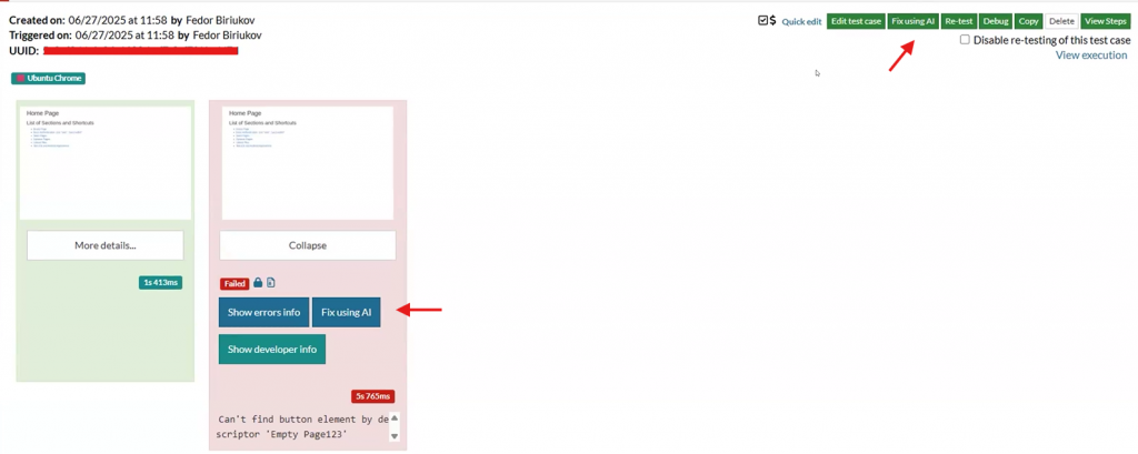 As for the fixing, it’s based on the same auto adapt feature which we have in Settings -> AI (See image below). Basically, it enables it but just for that particular run of the test case, not for all the test suite. By leveraging AI to fix broken tests, teams can reduce manual intervention, accelerate test suite recovery, and maintain high test coverage with minimal effort.